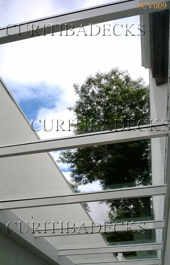 Se você preferir, podemos aplicar também policarbonato como cobertura, mas optamos pelo uso do vidro pois ele é mais durável, mais fácil de limpar, não faz barulho em dias de chuva ou granizo e, por ser mais translúcido, fica muito mais bonito.